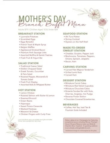 Mother's Day Brunch Buffet 10AM-2PM (Dinner Menu not available)