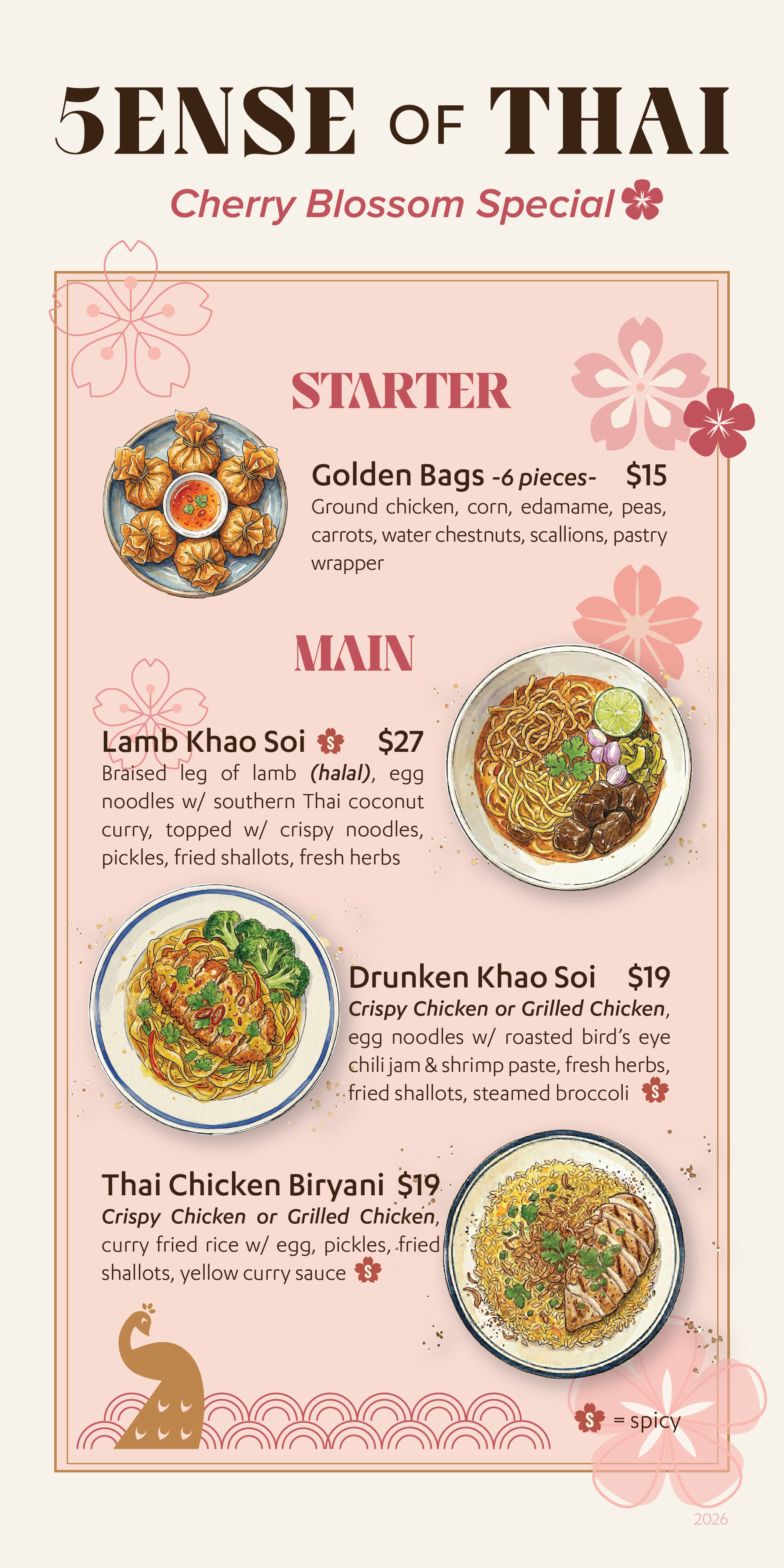 Celebrate the season of cherry blossoms at Sense of Thai with a limited-time Cherry Blossom Special menu, inspired by the vibrant ingredients and bold, expressive flavors of Southern Thai cuisine.